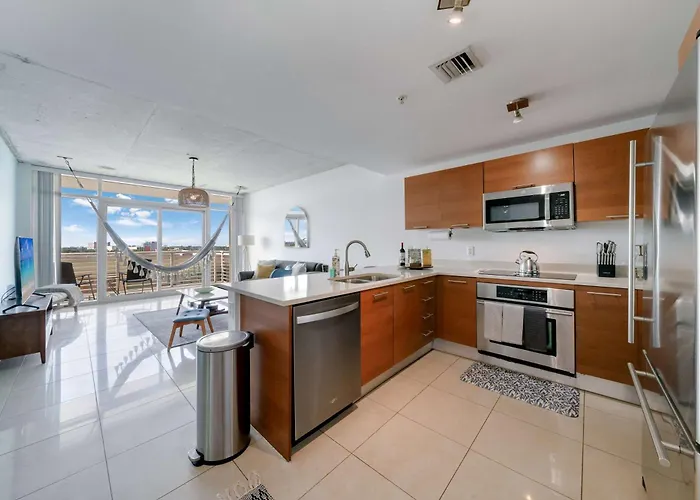 The 103 m² Midtown Miami Marvel- Heated Pool & Prime Location Apartment is situated just moments from the Midtown Boulevard and 5 km from Miami International airport. Located a mere 9 minutes' walk from the Miami Design District, this spacious apartment has access to a rooftop swimming pool and a fitness centre.